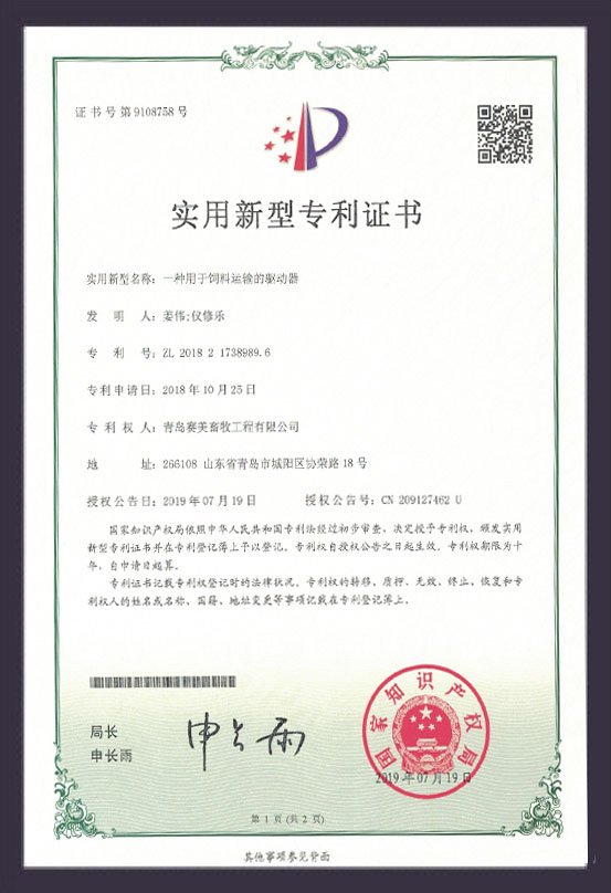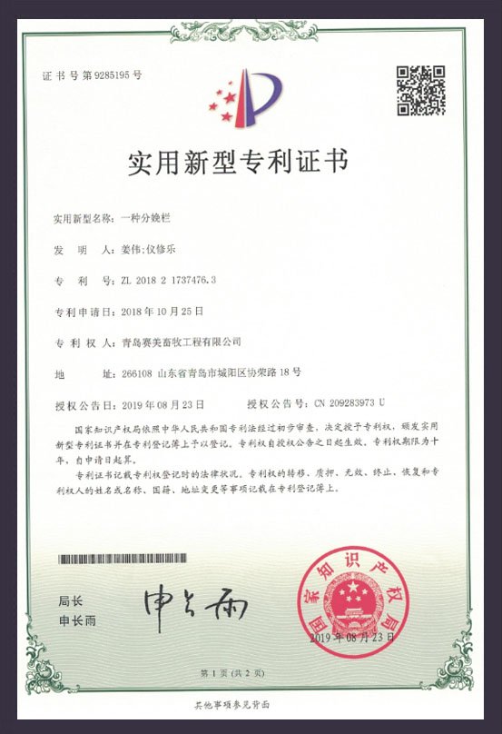 ?母豬產(chǎn)床專利證書