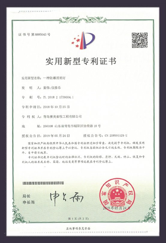 ?防爆照明燈具專利證書